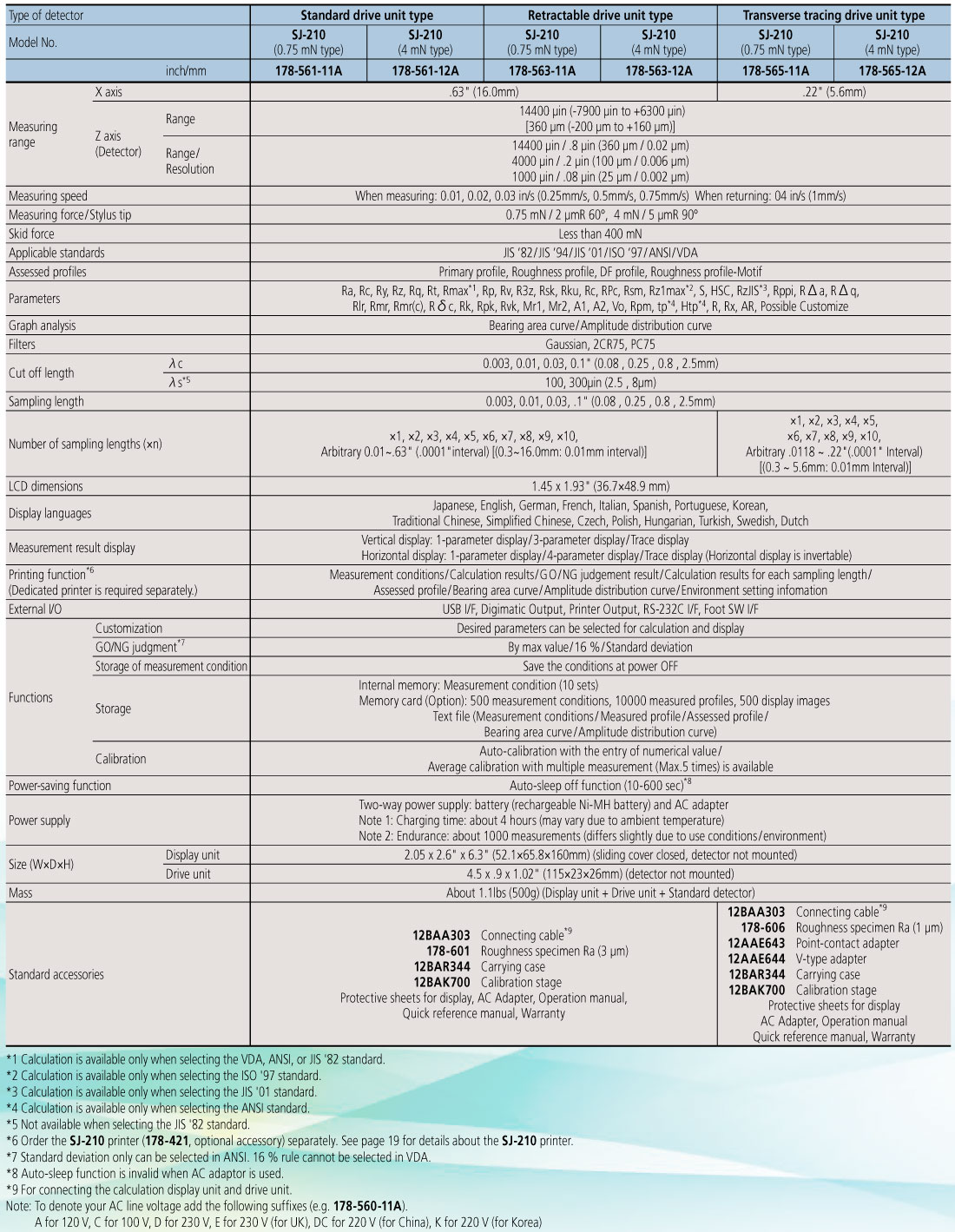 | ○ The Surftest SJ-210 complies with the following standards: JIS (JIS-B0601-2001, JIS-B0601-1994, JIS B0601-1982), VDA, ISO-1997, and ANSI |