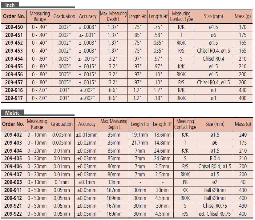 The 209-404 External Dial Caliper Gauge is used as a comparison gauge and should be used along with a Setting Ring or Micrometer. The Caliper Gauge is spring-loaded and makes point contact at constant measuring pressure.