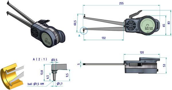 | ○ The caliper is spring loaded and makes point contact measuring pressure |