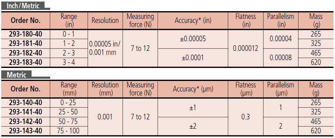High Speed & High Accuracy – It achieves spindle movement 4 times faster than the standard metric micrometers. This enables more efficient measurement work through speedy movement and excellent accuracy with a maximum permissible error (J MPE) of just ± 1 μm.