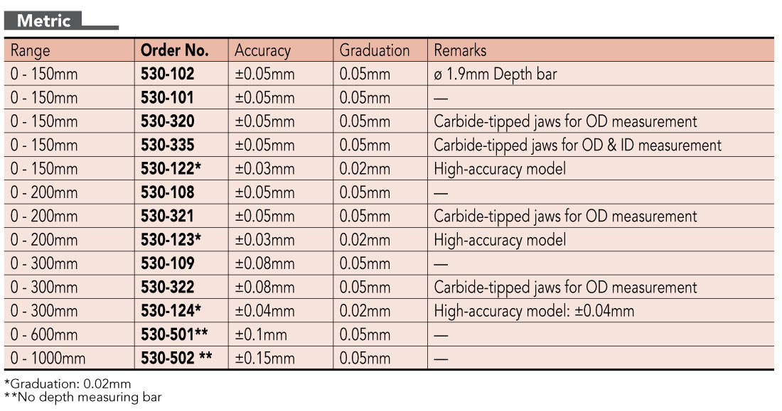 | ○ Carbide-tipped jaw type calipers are also available |