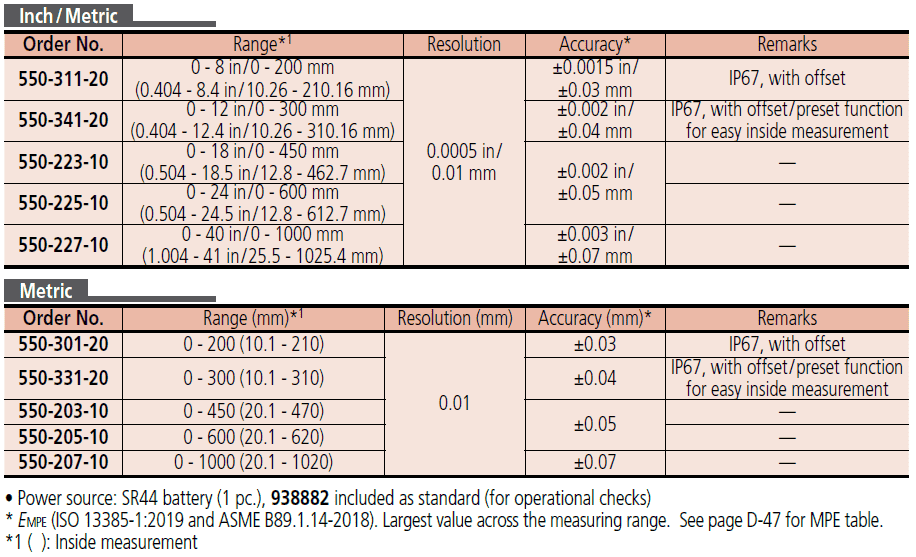 | Resolution | 0.01 mm , 0.0005″ |