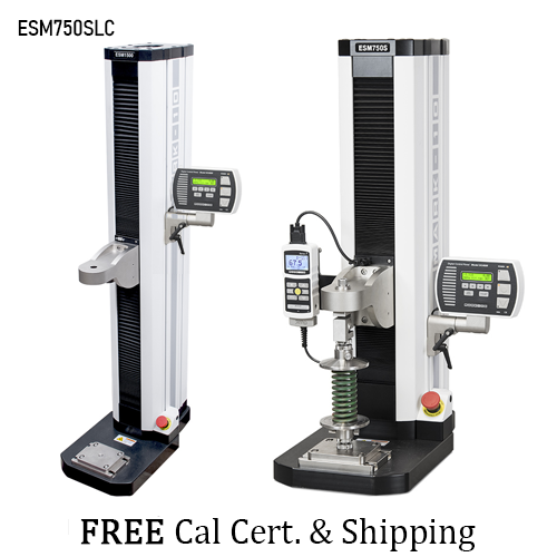 The ESM750SLC Motorized Single-Column Force Test Stand is a highly configurable solution for tension and compression measurement applications. With generous travel and clearance, it is suitable for break testing, cycling, limit testing to a load or distance, load-holding, elongation testing, tensile testing, compression testing and more.
