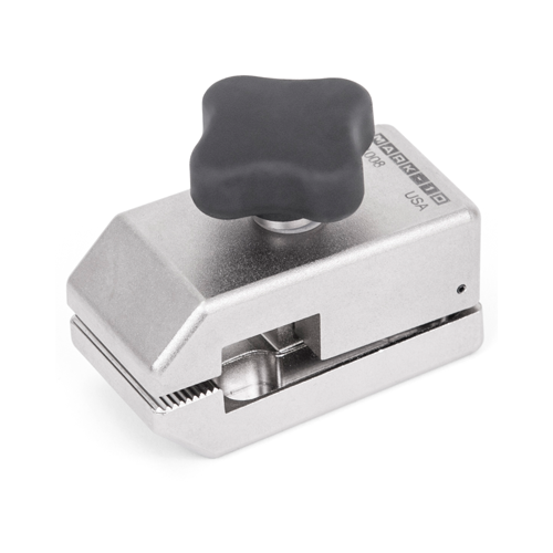 The G1008 grip is designed for film, paper, and other thin materials for tensile and peel testing, as per ASTM F88 and related standards. Adjustable serrated interlocking jaws effectively secure samples, while an ergonomic, rubberized knob easily engages and disengages the sample. A precision Acme screw provides durability and longevity over repeated engagements.