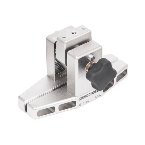 The G1015-2 grip is designed for film, paper, and other thin materials for tensile and peel testing, as per ASTM F88 and related standards. Adjustable serrated interlocking jaws effectively secure samples, while an ergonomic, rubberized knob easily engages and disengages the sample. A precision Acme screw provides durability and longevity over repeated engagements.