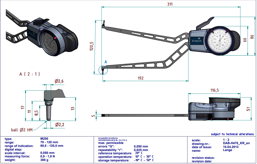 | Type of Measuring Contact Movable | HM-Ball Ø 2 mm |
