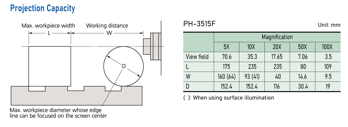 | Magnification Accuracy | Contour illumination ± 0.1% or less |