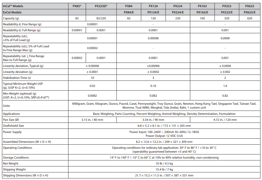| Applications | Basic Weighing, Parts Counting, Percent Weighing, Animal Weighing, Density Determination |