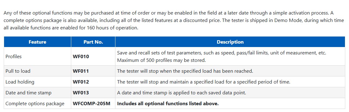 | ○ Pull to a specified load or maintain load for a specified period of time, as per UL 486A/B (optional functions) |